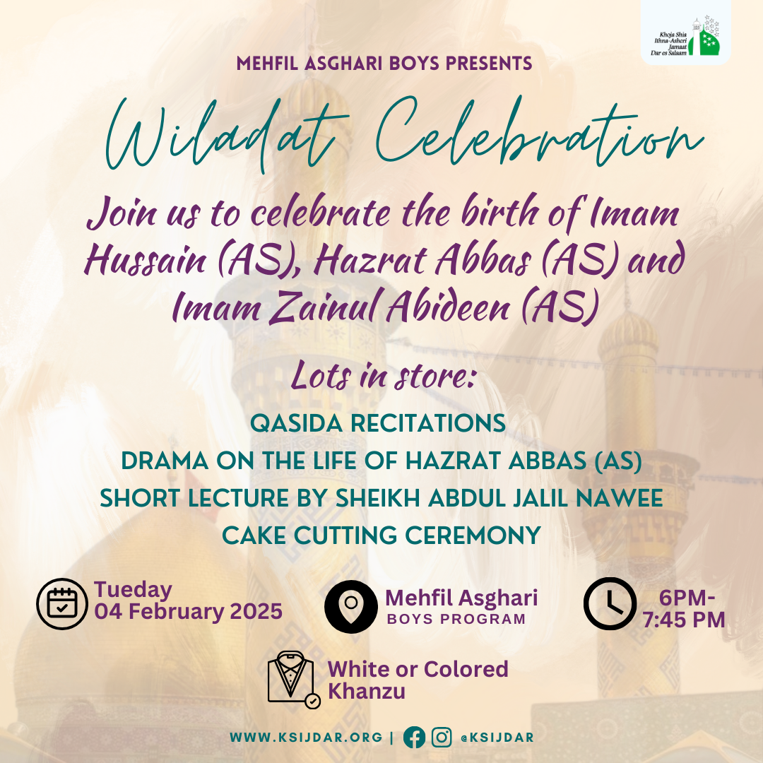 Shahadat of Imam Musa al-Kadhim and Wafat of Hz. Abu Talib Jan 26 Shahadat of Imam Musa al-Kadhim and Wafat of Hz. Abu Talib 10:00 – 12:00