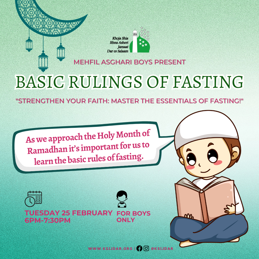 Boys Majlis (20th of Shuhada of Karbala) Jul 29 Boys Majlis (20th of Shuhada of Karbala) 18:00 – 19:00