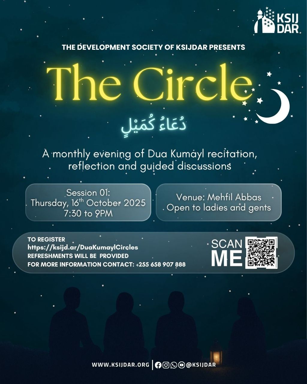 Join us for a reflective evening exploring the recitation and meaning of Dua Kumayl — one quarter at a time, completing it over four sessions this year. Ladies: 3rd Floor | Gents: 4th Floor (Terrace)