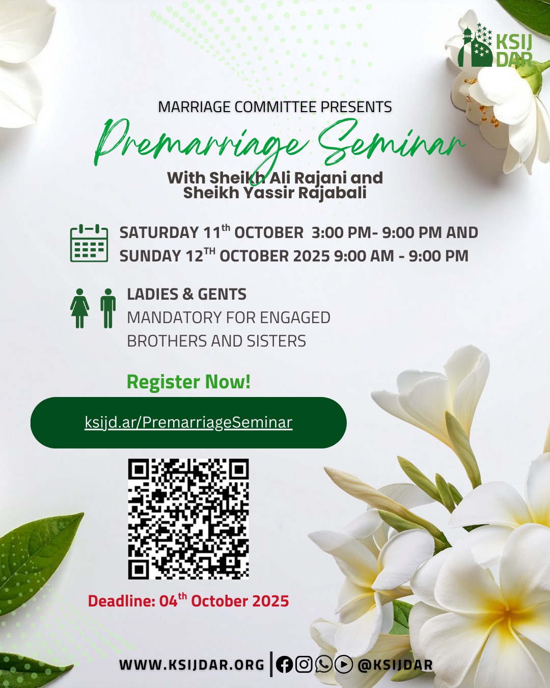 Imambargha – KSIJ Dar es SalaamThe KSIJ Dar Marriage Board invites all married couples to a powerful and insightful seminar with Sheikh Ali Rajani titled “The Silent Assassin of Marriages.” This session will explore the hidden factors that quietly weaken relationships and offer practical guidance on nurturing a stronger, healthier bond. 📅 Date: Monday, 13th October 2025🕖 Time: 7:15 PM📍 […]